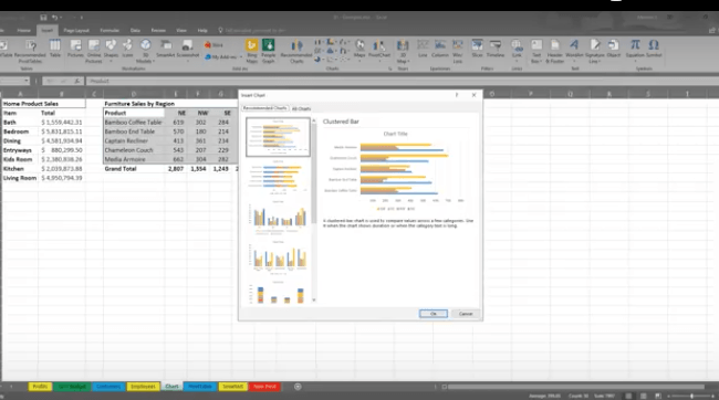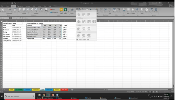 With Excel 2016, you have a “recommended charts” option. Excel will help you choose the chart that best suits your data.