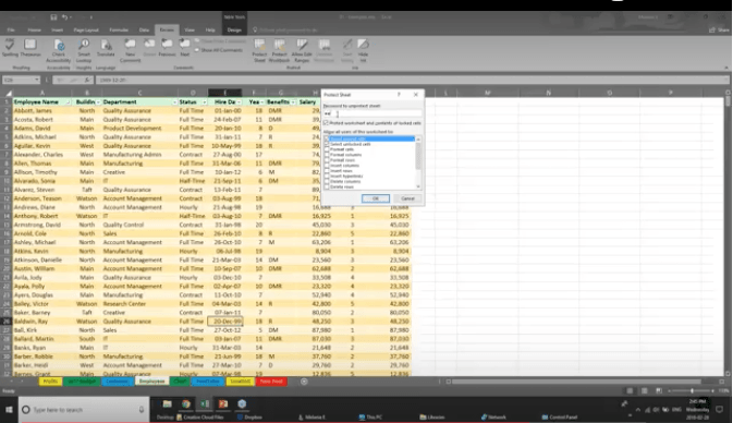 For example, if you want to hide employees’ salaries, you can hide this section when you share it. Or, you can let people see your data but lock it down, so they can’t change it. You can also protect your Worksheets and Workbooks to keep them secure from non-authorized users.