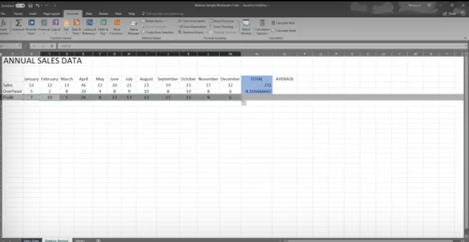 Excel computes the correct answer when you enter a formula into a cell. Once you’ve done this, it recalculates whenever you change any of the values. The way Excel knows that you’re entering a formula is by starting with an equal sign. Then you follow the equal sign with a SUM or AVERAGE.