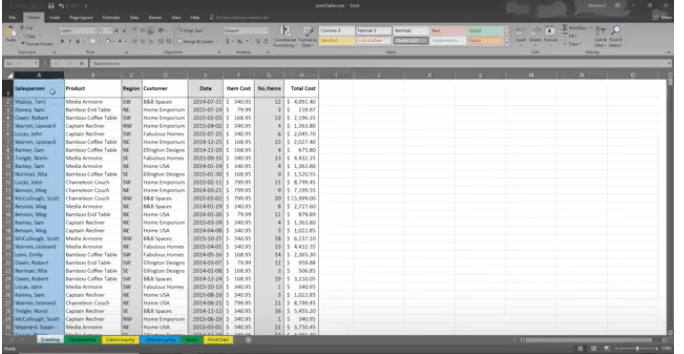 PivotTables help you analyze your Worksheet data. You can summarize, analyze, explore and present your data in just a few clicks. They are very flexible and can be adjusted to your unique needs. Note: Your data should be organized without blank rows or columns for this to work properly.