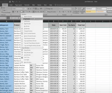 You have options to create borders around cells, rows or columns from the drop-down menu. You can also shade cells with a solid background. Don’t forget that you can change the style and types of fonts. Right-click the text, and a drop-down menu will appear where you can make these and other selections easily.