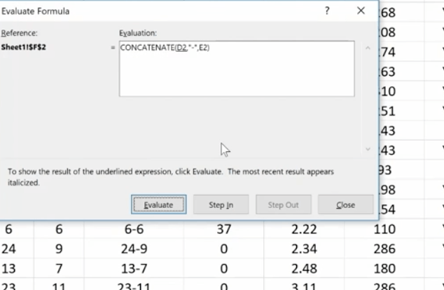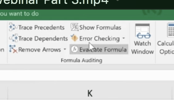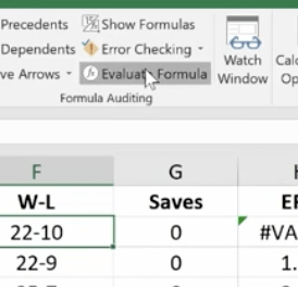 Click Evaluate and it will change the formula to the actual value that you can review. Each time you click Evaluate, it will take you through the steps of how you got to the final formula. You can trace your way through to see if you made any errors.