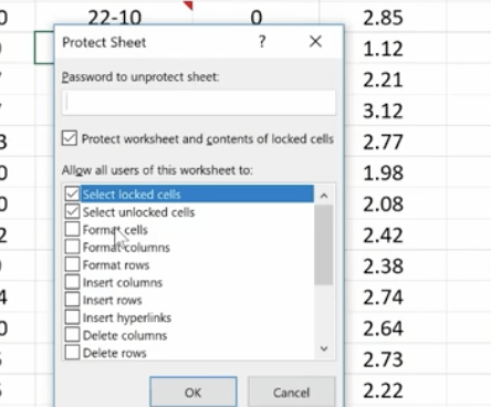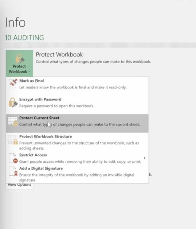 You can also protect a current sheet you’re working on. It will take you back to your worksheet where you’ll be presented with a variety of options.