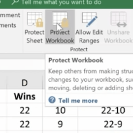 Once complete, click OK and your Protect Workbook function turns yellow indicating that you’ve protected your workbook.