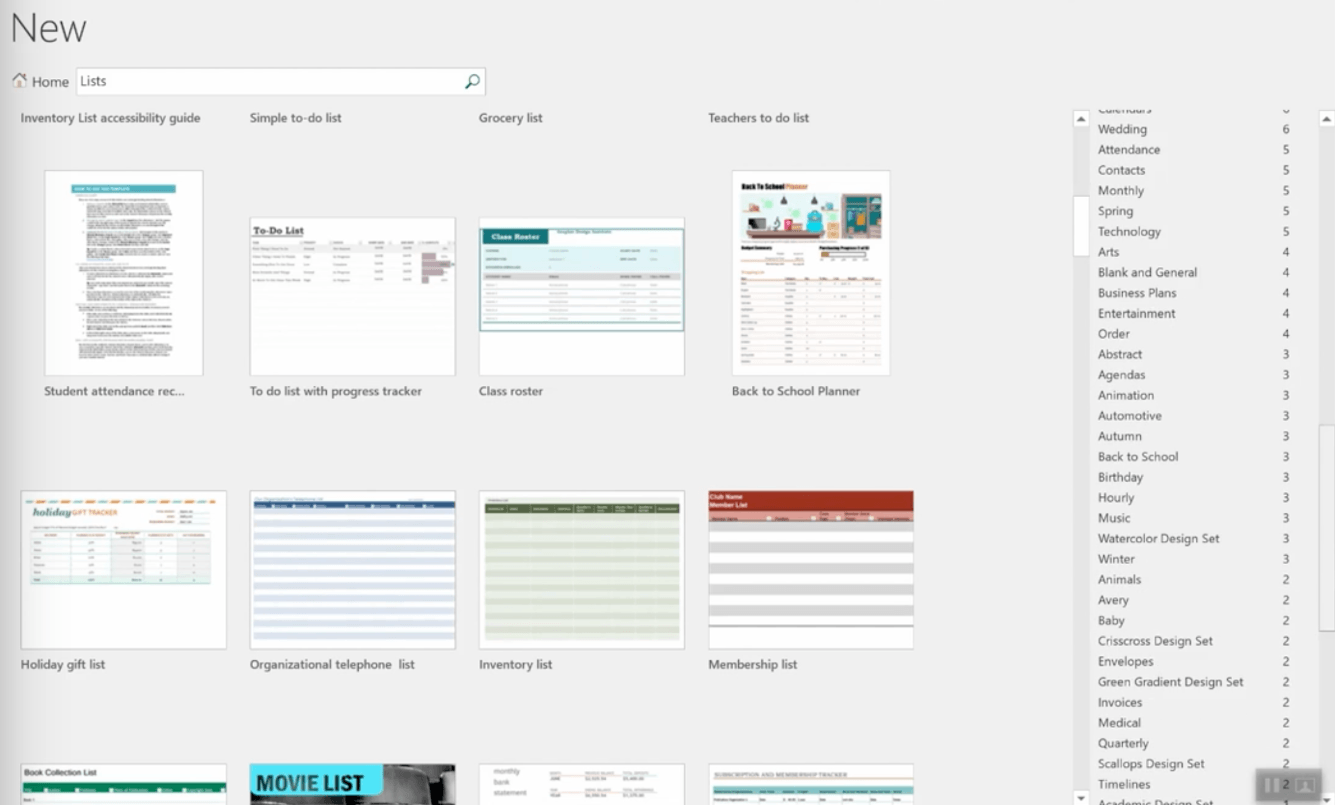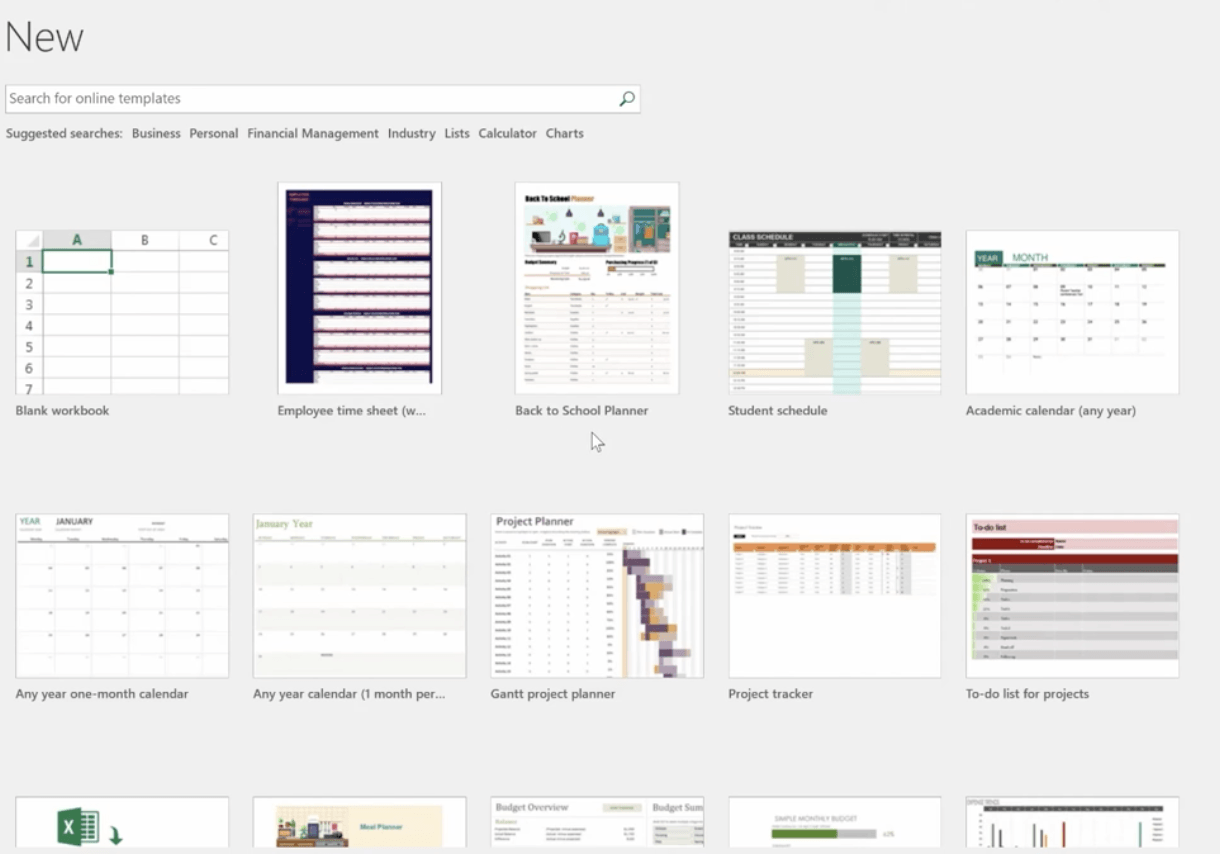 To see the variety of templates you can use in Excel, click File>New and you’ll be presented with a collection of 25 templates you can choose from.