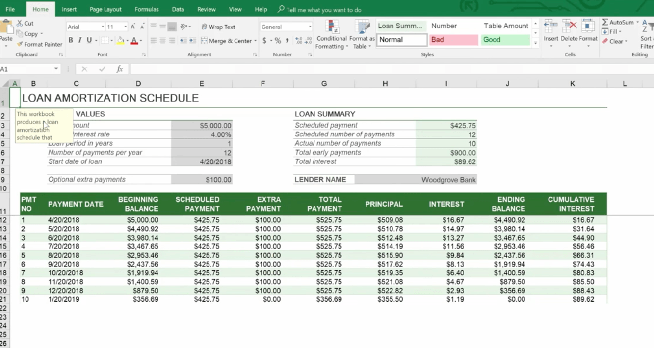 For example, there’s a great Loan Amortization Schedule you can use. Formulas are built in for you. All you need to do is change the numbers.