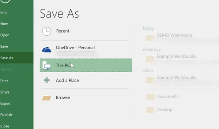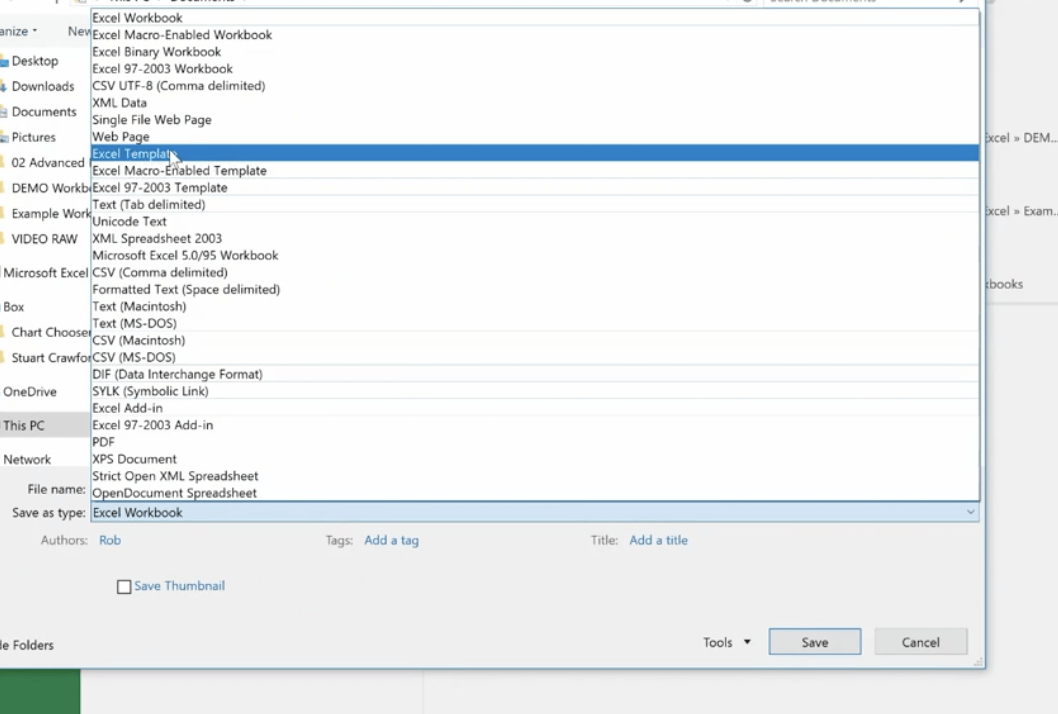 Go to File>Info>Save As and save the template to your location, then save as an Excel Template.