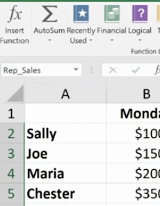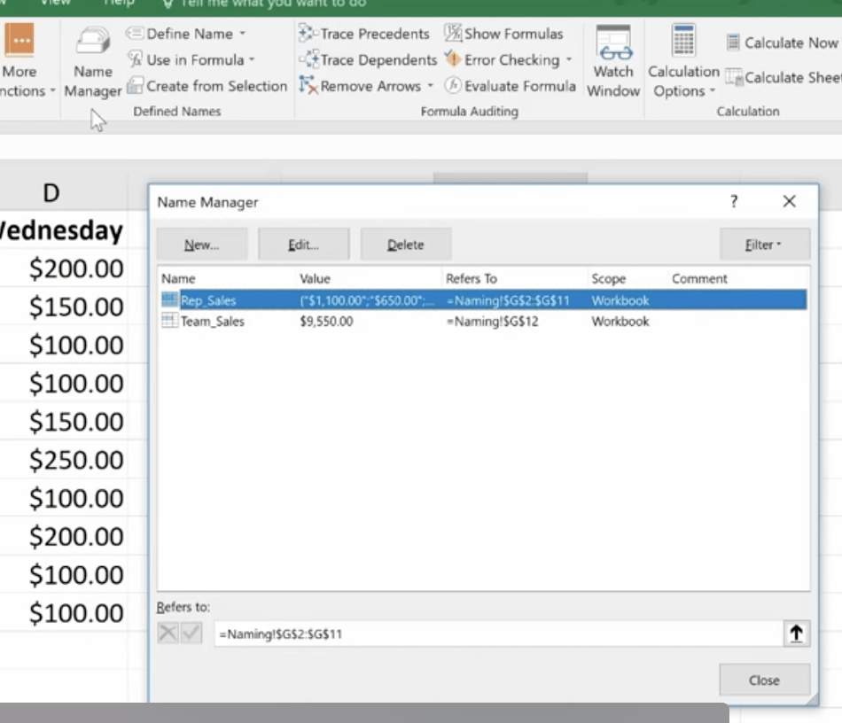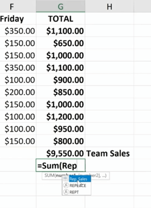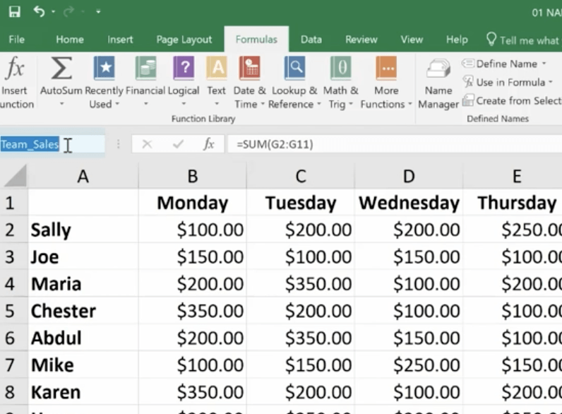 Notice that there’s an underscore between Team and Sales (Team_Sales). There are some rules around naming cells: