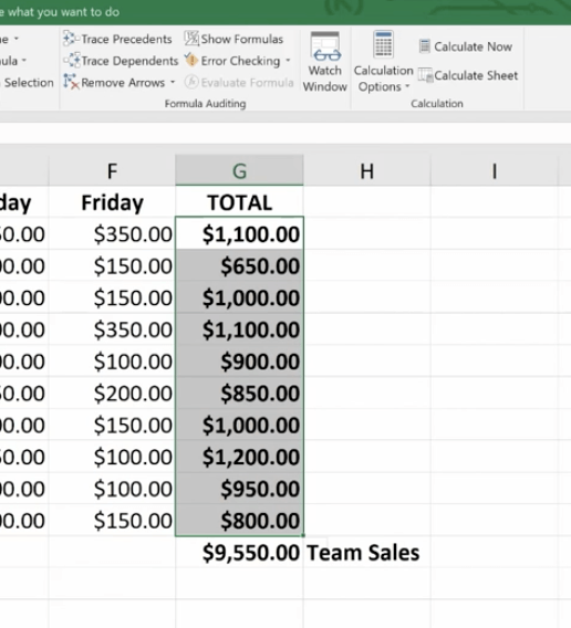You can teach Excel to speak your language by naming the G12 cell Team Sales. This will have more meaning to you and your teammates. The benefits of naming cells in this fashion are that they are easier to remember, reduce the likelihood of errors, and use absolute references (by default).