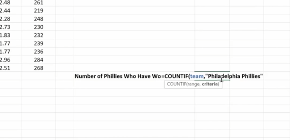 Count If is used for finding answers to questions like, “How many orders did client x place?” “How many sales reps had sales of $1,000 or more this week?” or “How many times have the pitchers of the Philadelphia Phillies won the Cy Young Award?”