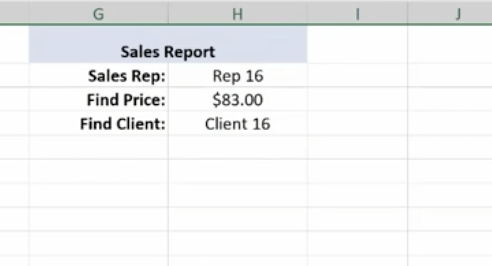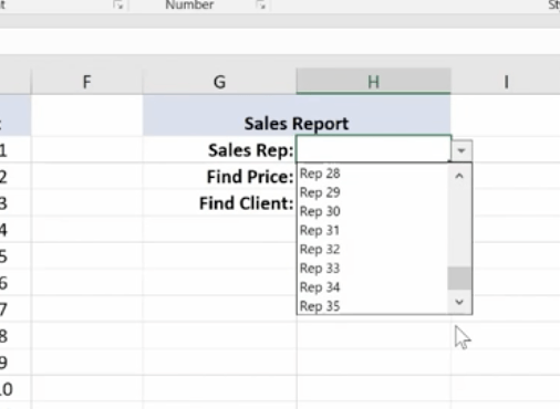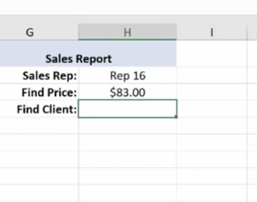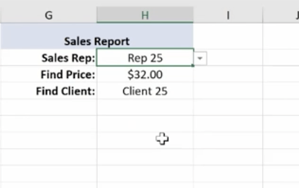 You can access the sales reps in the drop-down menu. Pick a rep and use the V Lookup Function to find the price.