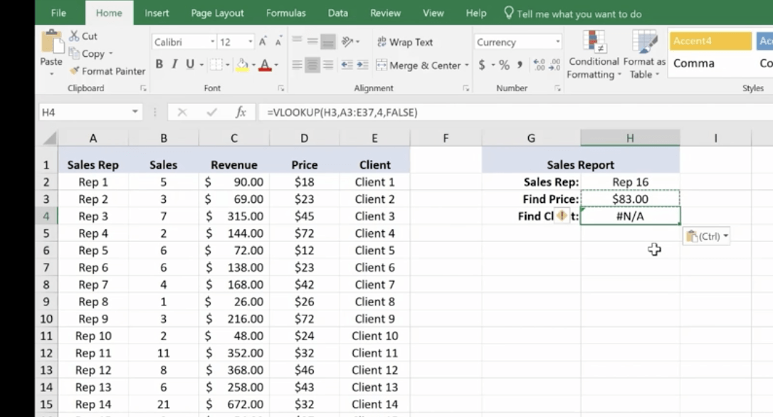 Now we’ll do a similar V Lookup for the Client. Copy and Paste: