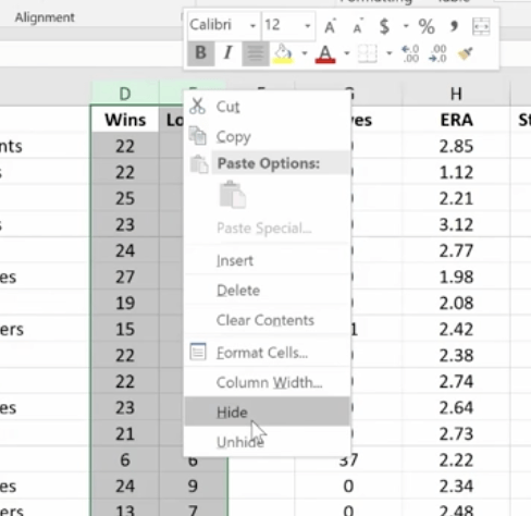 Now, just go in and hide the Wins and Losses columns. Don’t delete them or your new column will have a reference error.