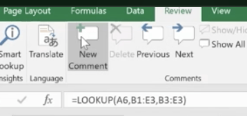 You’ll find the New Comment button at the top under the Review Menu. Simply click the cell where you want the comment to go and click New Comment. Then type your comment and click outside the box to close it. The comment will disappear but it’s still there. Anywhere you see a red flag, there’s a comment.