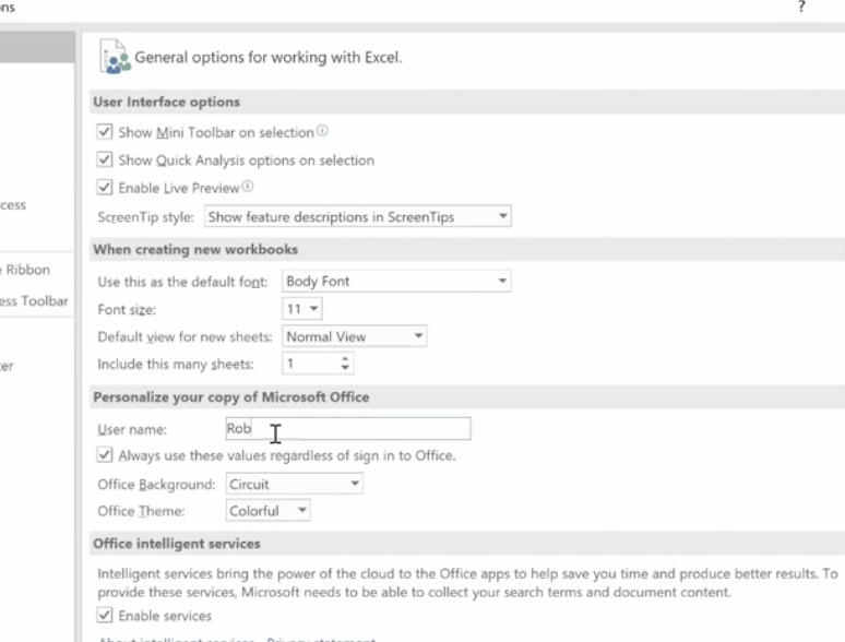 If your name doesn’t appear in the comment, go to File>Options>General and personalize your copy of Excel (in this case Microsoft Office) under the User Name. You won’t need to go back and change each comment; Excel will do this for you.
