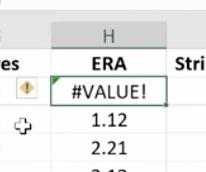 The yellow diamond on the left of this cell indicates that there’s an error.